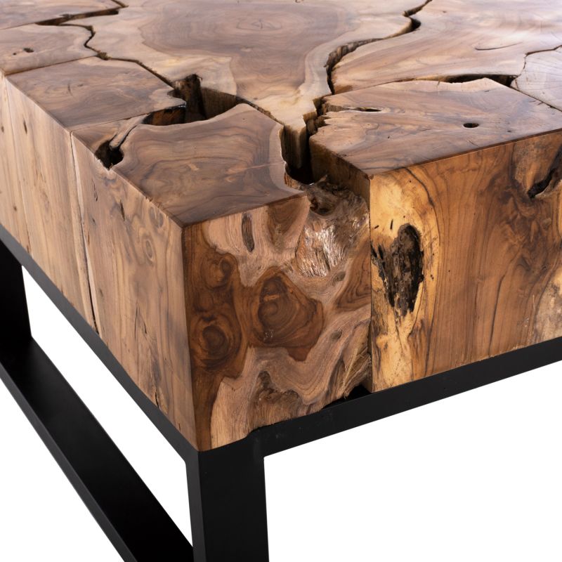 ΗΜ9355 is a rectangular short table for the living room, with satisfactory dimensions in a natural wood color. The table rests on a BLACK metal base. This table will aesthetically upgrade your living room while it can match many different styles and colors in the surrounding space. It consists of several different pieces of solid wood joined together to form its rectangular shape. The existing cracks or those that may be created over time are due to the contraction-expansion of the living organism called solid wood, and are not a manufacturing defect, giving originality and unique design to your space. These are not a product defect.