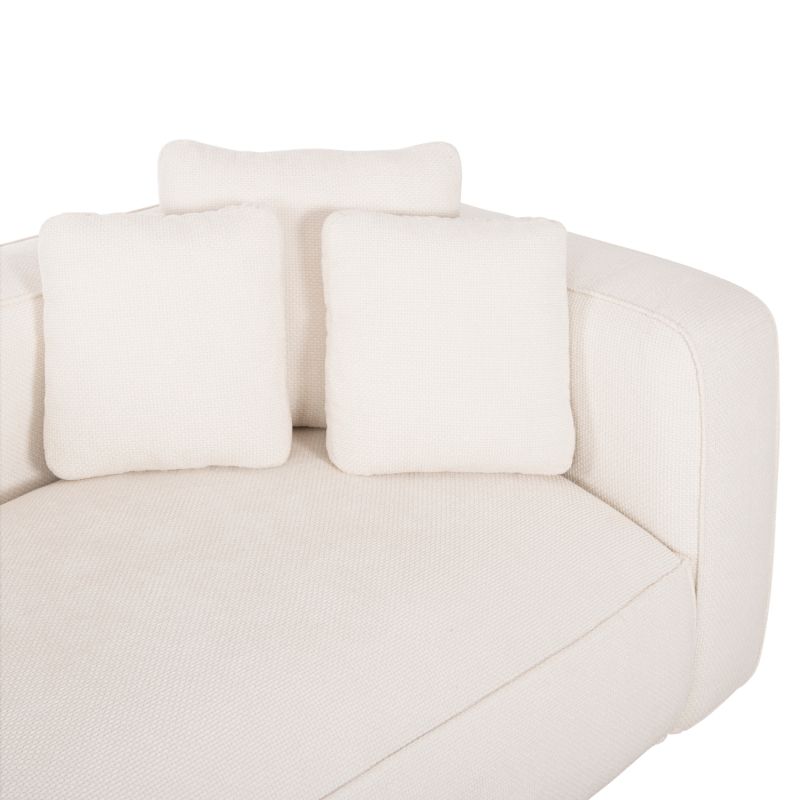 GRACE is a new 3-seater sofa in a LEFT-corner configuration (as you look at it) and a design that reaches low in the form of an "apron". It is upholstered in a beautiful fabric in WHITE color while the piece that forms the corner is connected to the main sofa with vertical panel hangers. The arms are particularly wide, and the backrest is low and there are 6 decorative cushions, while the seat has medium hardness foam fillings combined with horizontal (zig-zag) springs offering unparalleled comfort. And of course, we offer this sofa with a 3-year frame warranty! Don't wait any longer!
