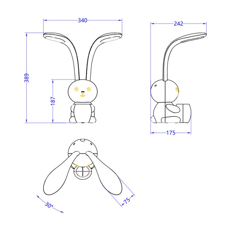KIDS DESK LAMP LED BADOO HM4456.01 BUNNY FIGURE WITH PENHOLDER YELLOW ABS