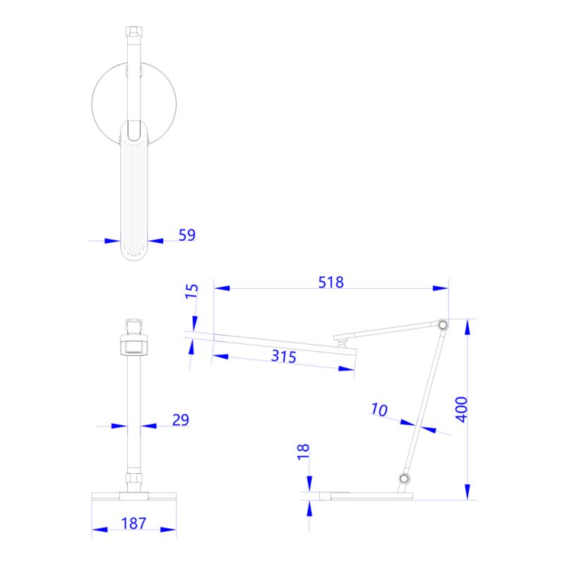 Featuring a round ABS base in BLACK and classic DARK GRAY aluminum articulated arms, the HM4454.02 is built with durability in mind. On this round base there is the round touch control panel, which gives access to the three-color temperature settings, as well as stepless dimming. All these settings allow you to adjust the lighting according to your needs, whether you are doing detailed work or enjoying moments of relaxation.