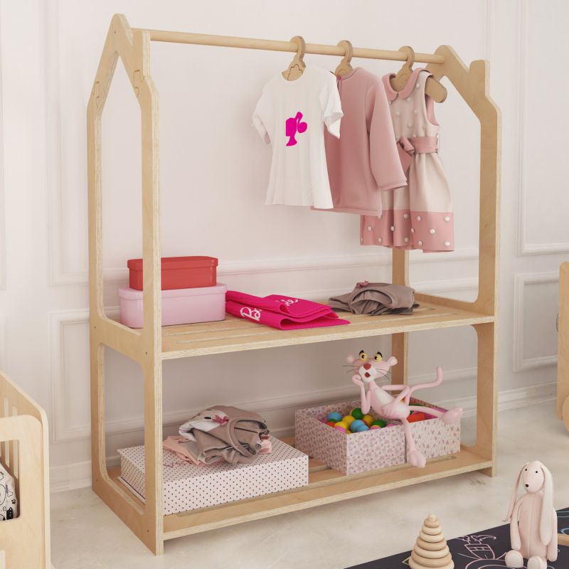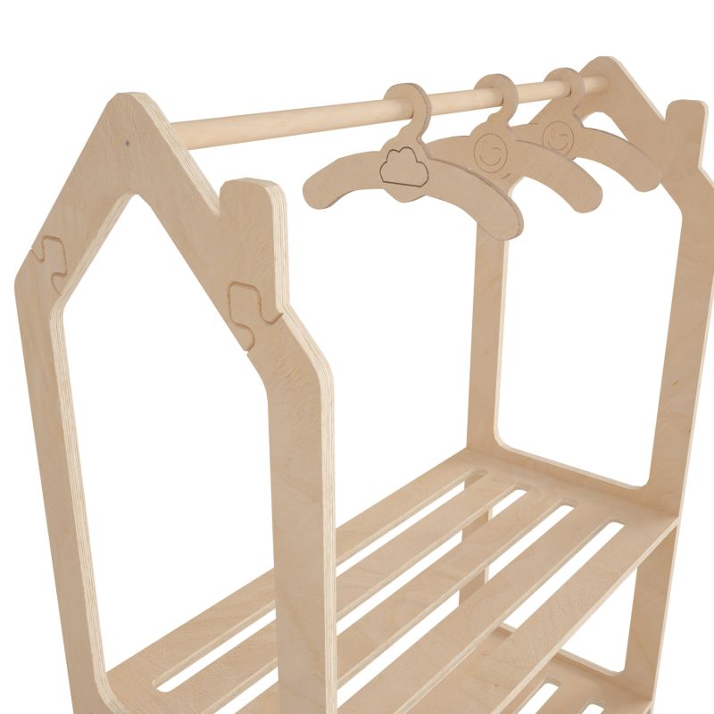 The children's hanger of the “SANI” furniture series came to make your life easier in the children's room. It is made of birch wood in a NATURAL color and what children will love is its design in the shape of a house. It has 2 long shelves, while the hanger rail is located directly above. A piece of furniture that you will love at first sight!