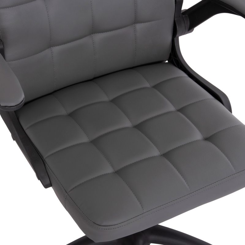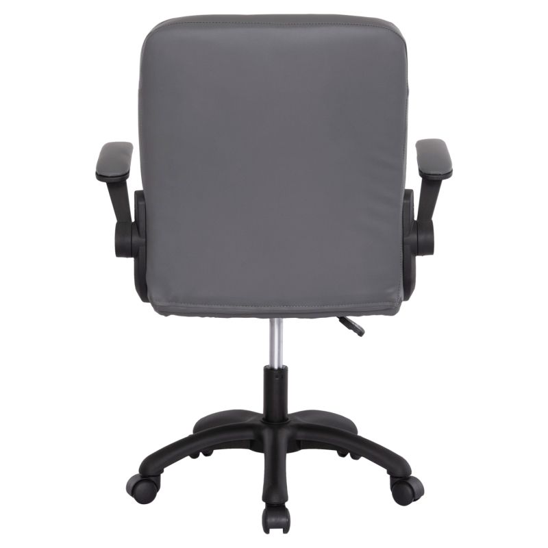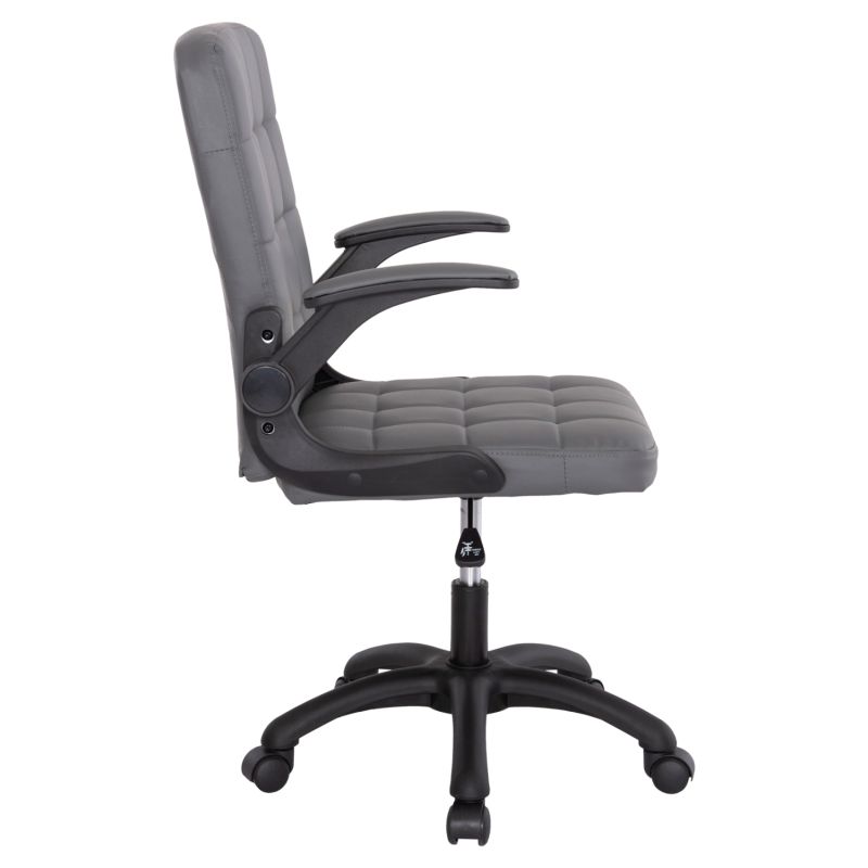 The PORTIMA office chair is another addition to our range. It has a medium height back and flip-up arms. The upholstery of the back and the square seat is made of high-quality PVC synthetic leather in GREY color, with a quilted style. Both the arms and the rest of the frame as well as the base are made of nylon material in BLACK color, as are the caster wheels. The suspension has height and recline adjustment mechanisms.