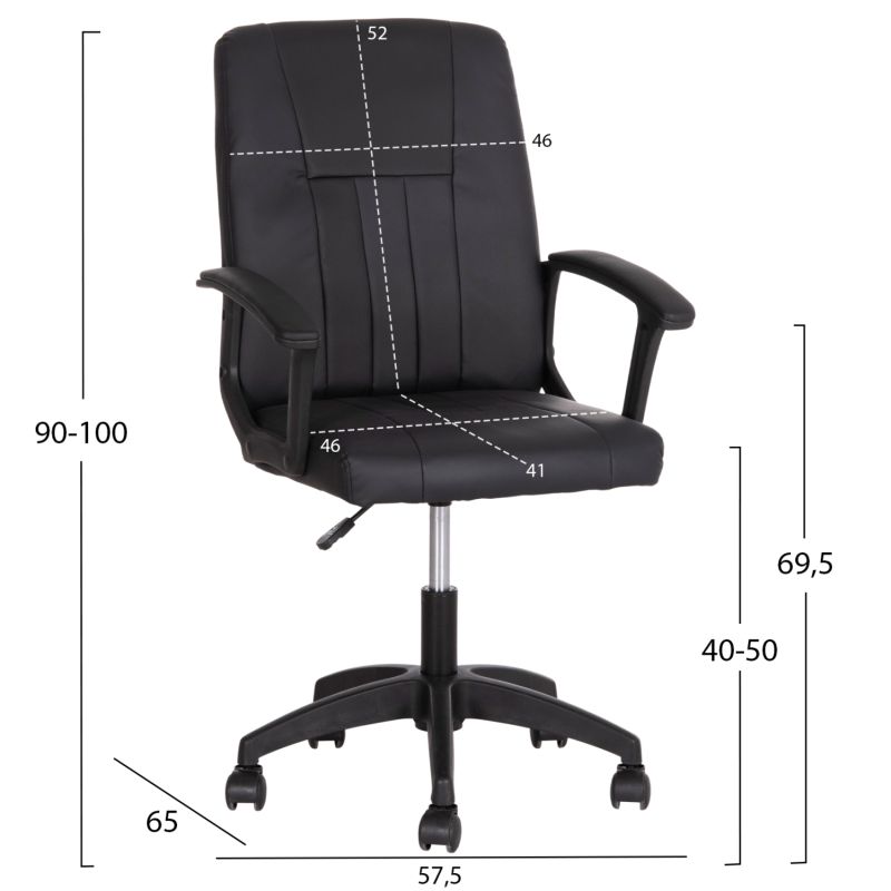 OFFICE CHAIR NIM HM1200.01 BLACK PVC-BLACK NYLON FRAME AND BASE 58x65x100Hcm.