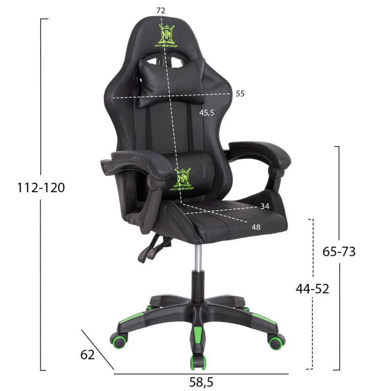 GAMING ARMCHAIR DARREN HM1203.03 BLACK-GREEN PVC 58.5x100x120Hcm.