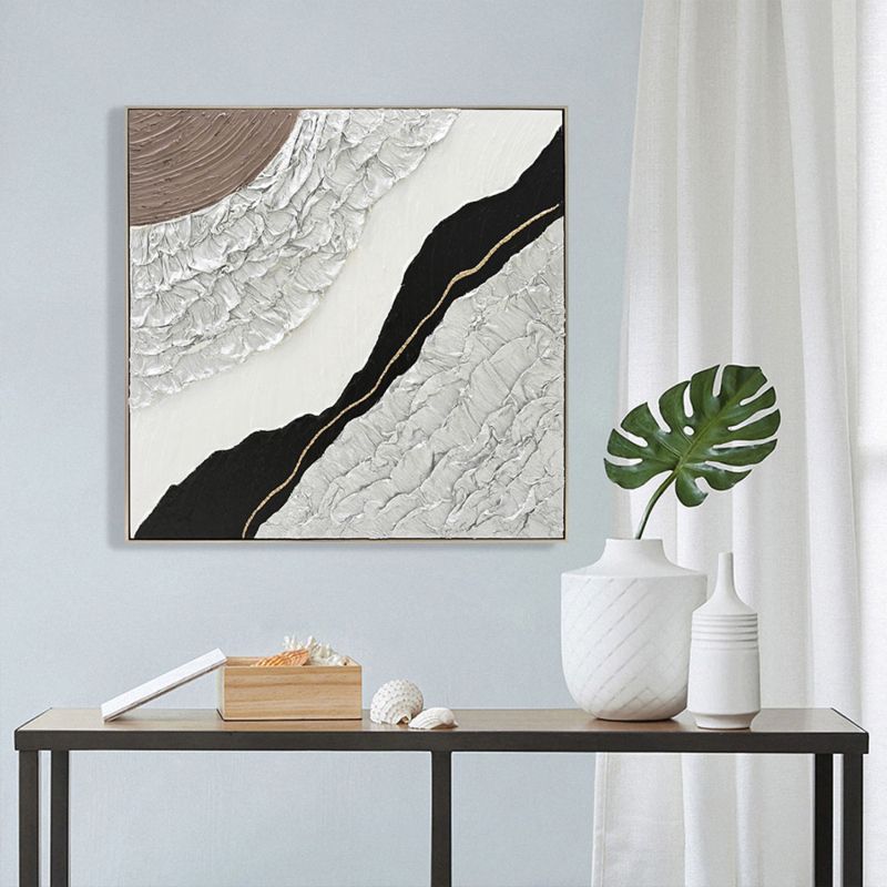 WALL PAINTING ABSTRACT (SQUARE) HM4553.01 BEIGE PS FRAME-CANVAS-HANDMADE 82x4.5x82Hcm.