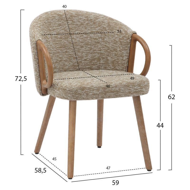 DINING CHAIR RIG HM9979.01 BEECH WOOD LEGS IN WHITEWASH-BEIGE FABRIC 59x58,5x72,5Hcm.