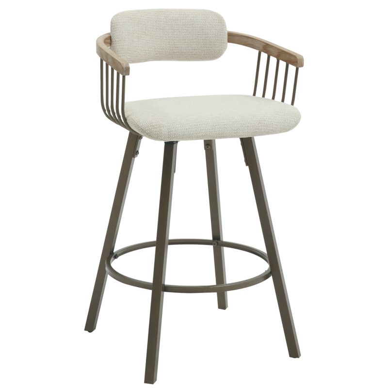 BAR STOOL SWIVEL LANG HM9990.01 ANTIQUE COPPER METAL FRAME-ECRU FABRIC 51,5x48,5x89,5Hcm.