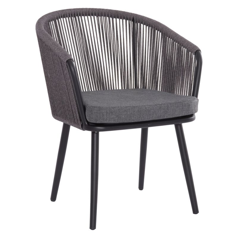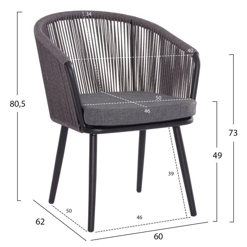 DINING CHAIR HARRIET HM5548.13 ALUMINUM BLACK FRAME-ANTHRACITE P.E.ROPE & CUSHION 60x62x80,5Hcm.