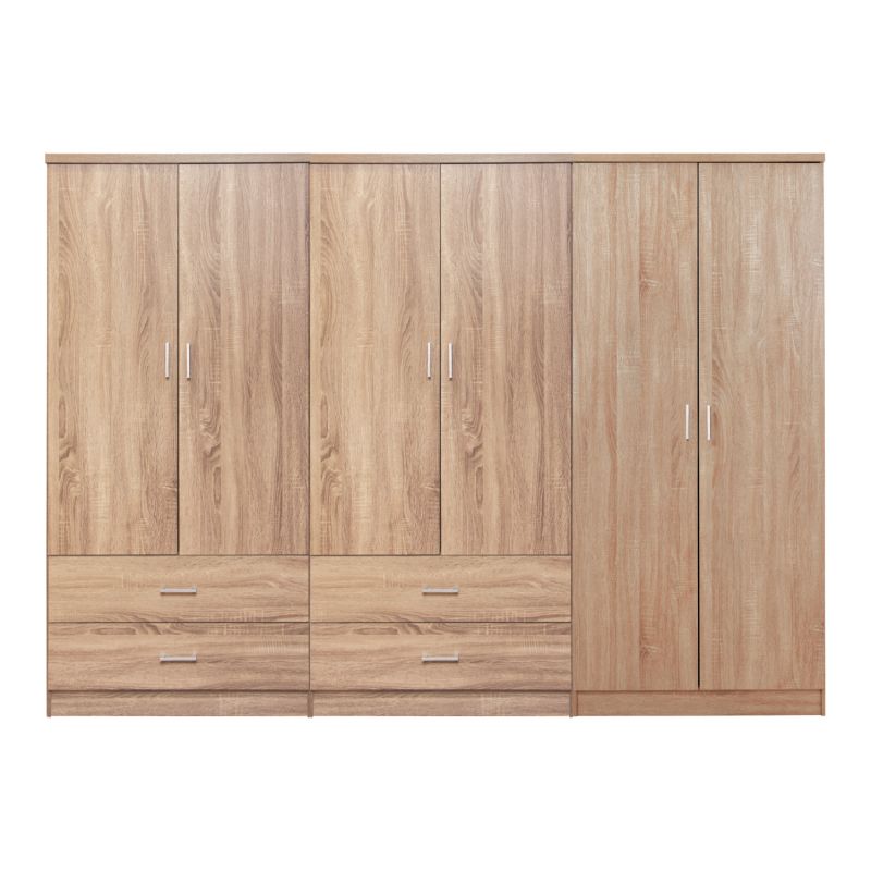 WARDROBE REINA HM21062.02 6-LEAF WITH 4 DRAWERS-MELAMINE IN SONAMA COLOR 240x43x181Hcm.