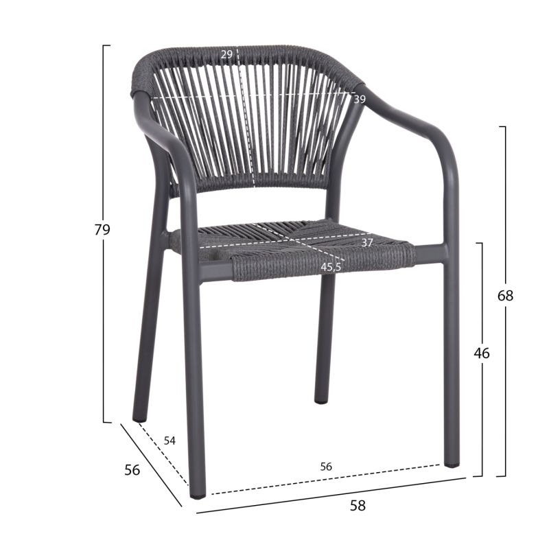 DINING ARMCHAIR ALUMINUM LUCCI HM6266.01 DARK GREY FRAME & P.E. RATTAN 58x56x79Hcm.