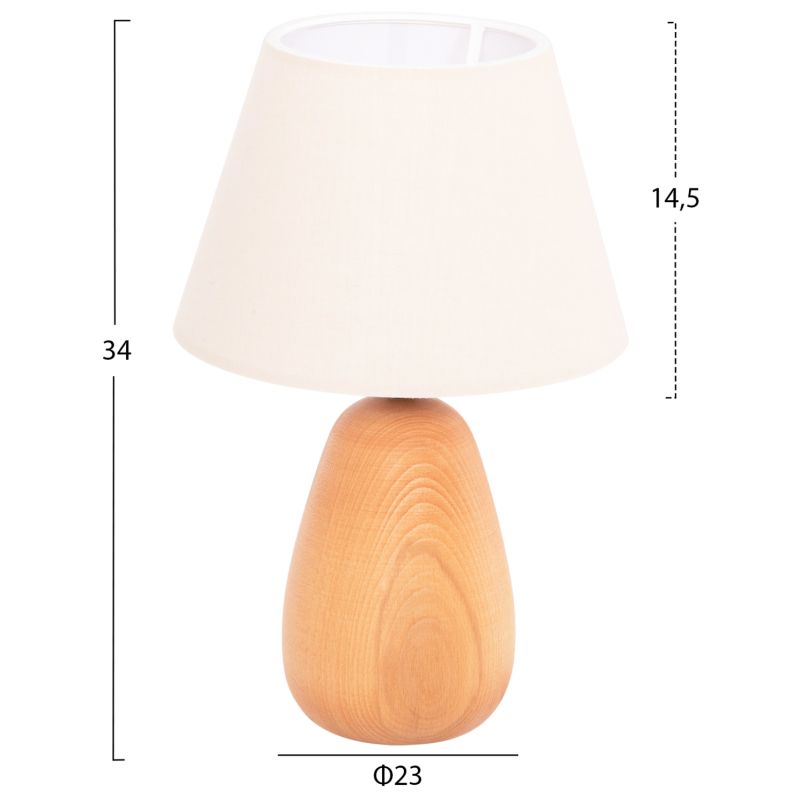 TABLE LAMP CONNI HM4710 CREAM WHITE CAP-WOODEN BASE Φ23x34Hcm.