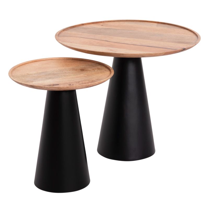 COFFEE TABLES 2PCS RIFF HM9997 MANGO WOOD TOP-IRON BASES Φ60 & Φ40 cm.
