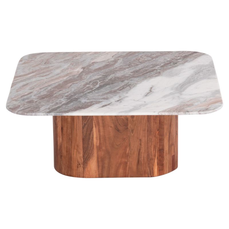 COFFEE TABLE SQUARE VOLTI HM18000 GREY MARBLE-ACACIA WOOD 100.5x100.5x40Hcm.