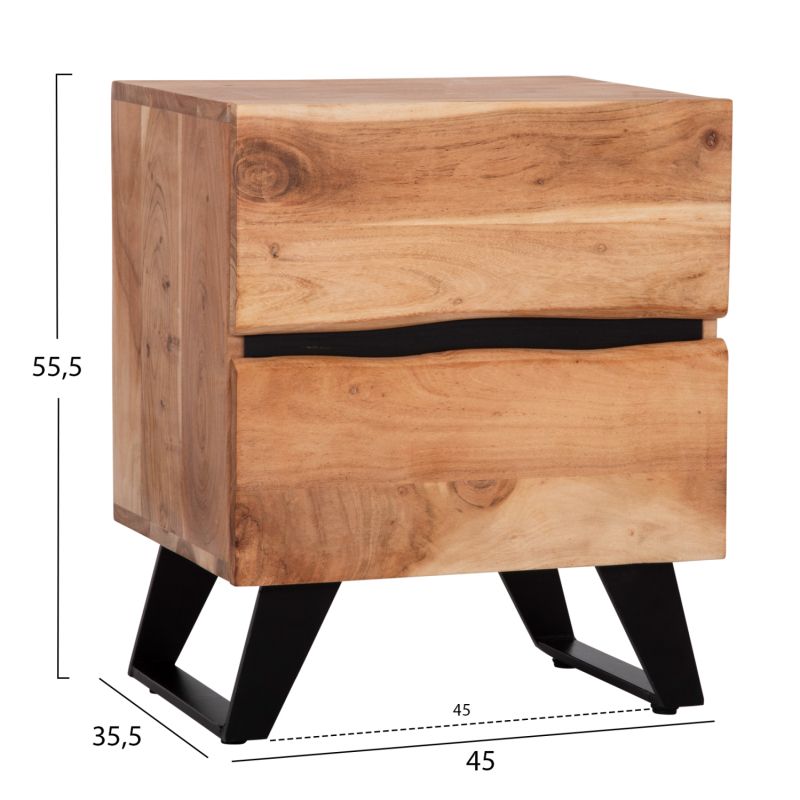 NIGHTSTAND WITH 2 DRAWERS ALICIA HM8360.21 SOLID ACACIA WOOD-METAL 45x35x56Hcm.