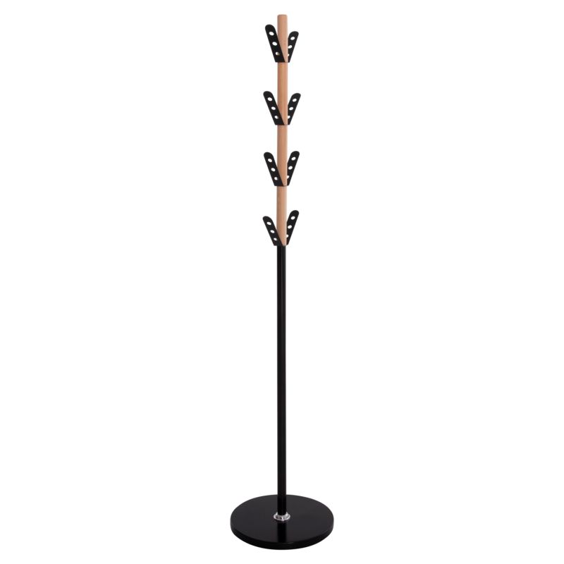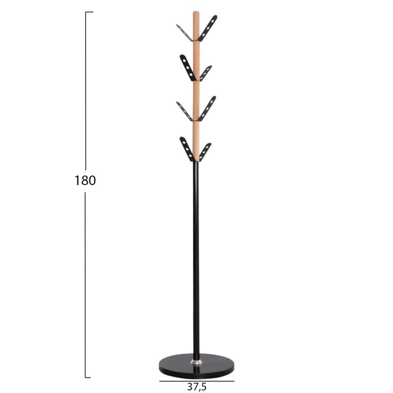COAT HANGER BILLY HM18075.01 BEECH WOOD-BLACK METAL-BASE WITH WOOD Φ37.5X180Hcm.