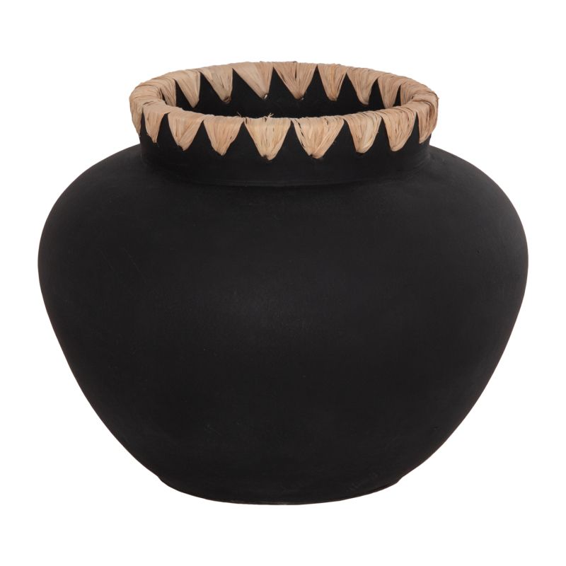 DECORATIVE VASE RENTON(L) HM4370 TERRACOTTA IN BLACK-STRAW WEAVING ON THE RIM Φ32x26.5Hcm.