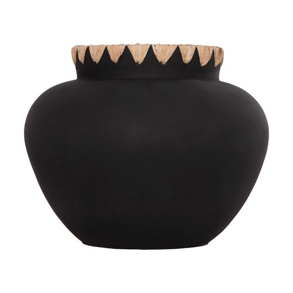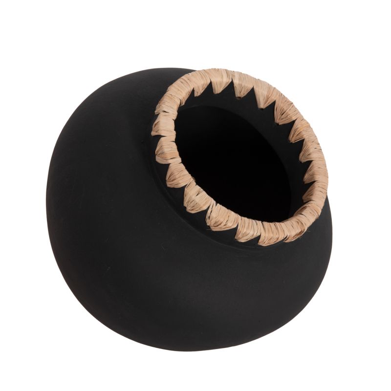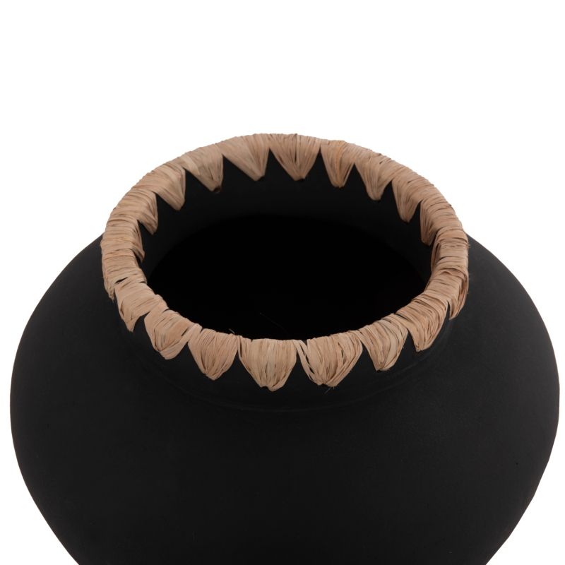 DECORATIVE VASE RENTON(M) HM4732 TERRACOTTA IN BLACK-STRAW WEAVING ON THE RIM Φ28x23Hcm.