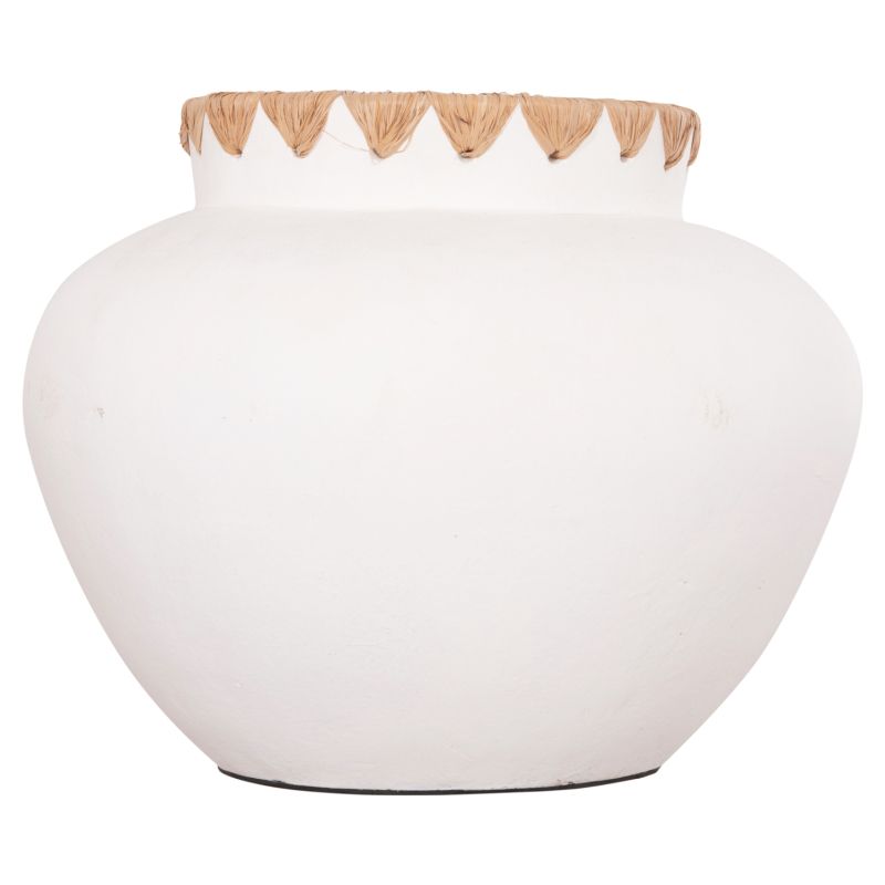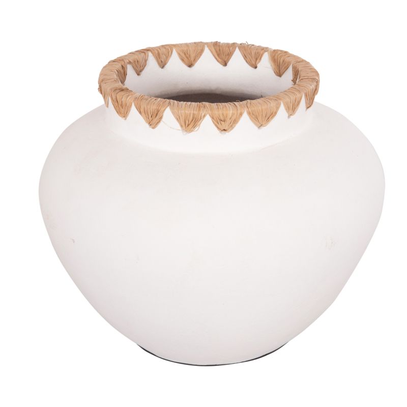 DECORATIVE VASE RENTON(S) HM4735 TERRACOTTA IN WHITE-STRAW WEAVING ON THE RIM Φ23x19Hcm.