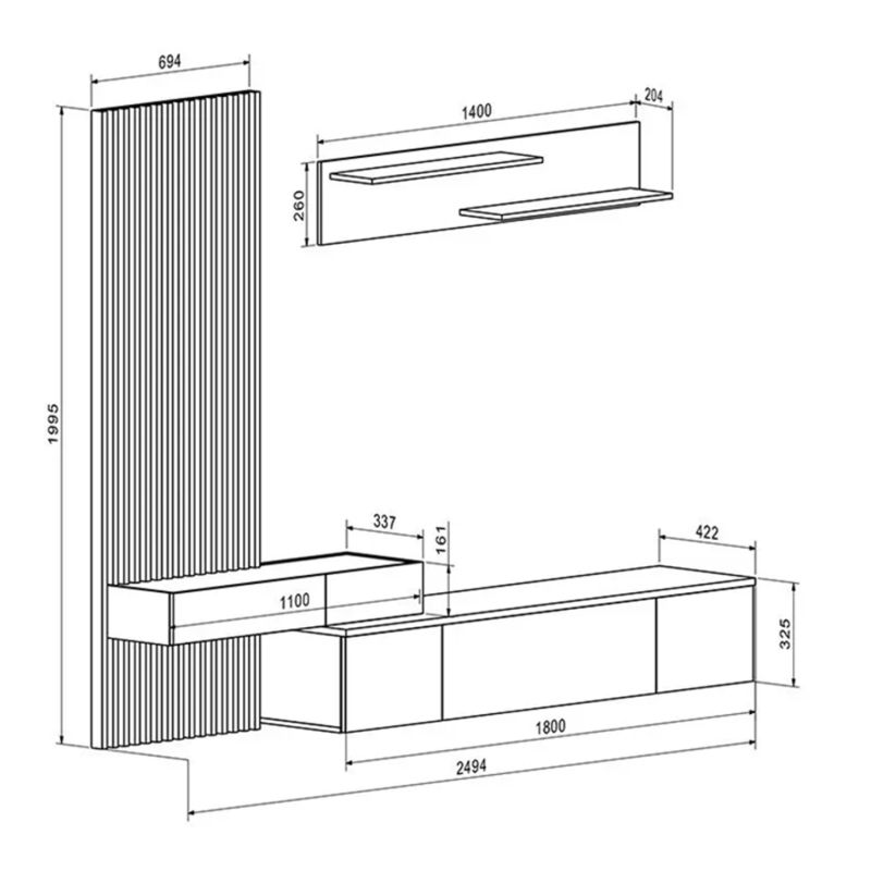 TV FURNITURE COMBO DORT HM18076.02 MELAMINE IN SONAMA-DARK GREY 249.5x42.2x199.5Hcm.