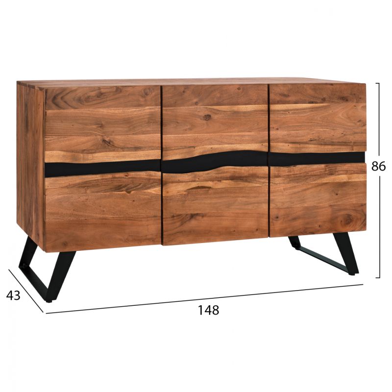 Buffet HM8173.11 Alicia from Solid acacia Wood natural 148x43x86 cm.