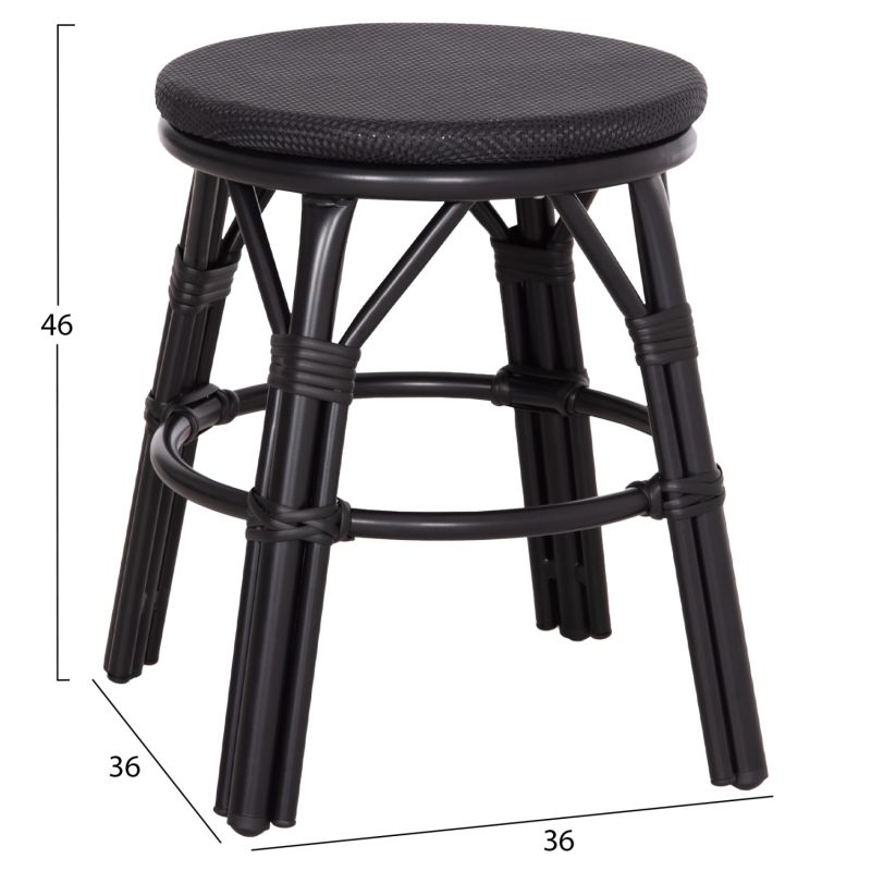 ALUMINUM ROUND STOOL CHINO HM6285.02 BAMBOO LOOK & TEXTILENE IN BLACK Φ36x46Hcm.