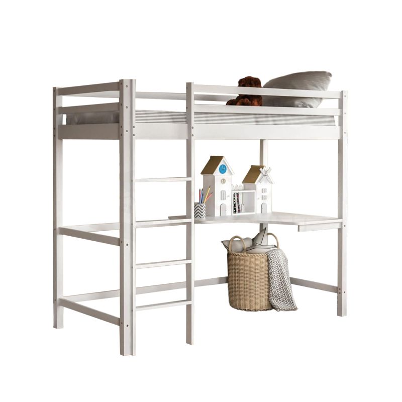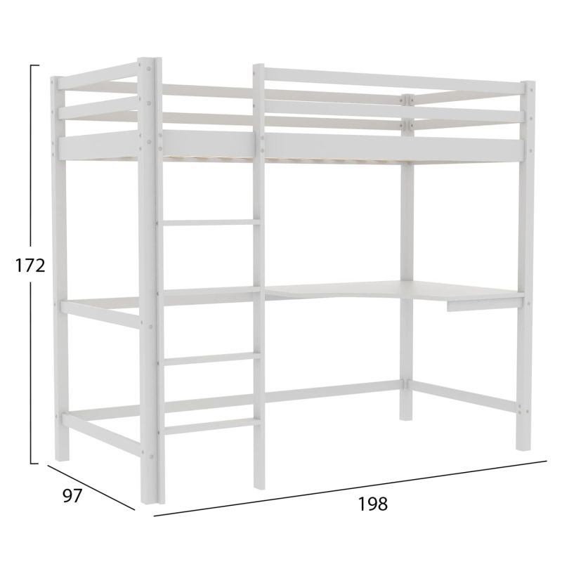 KID'S BUNK BED WITH DESK AKRON HM702.03 PINE WOOD IN WHITE FOR MATTRESS 90x190cm.