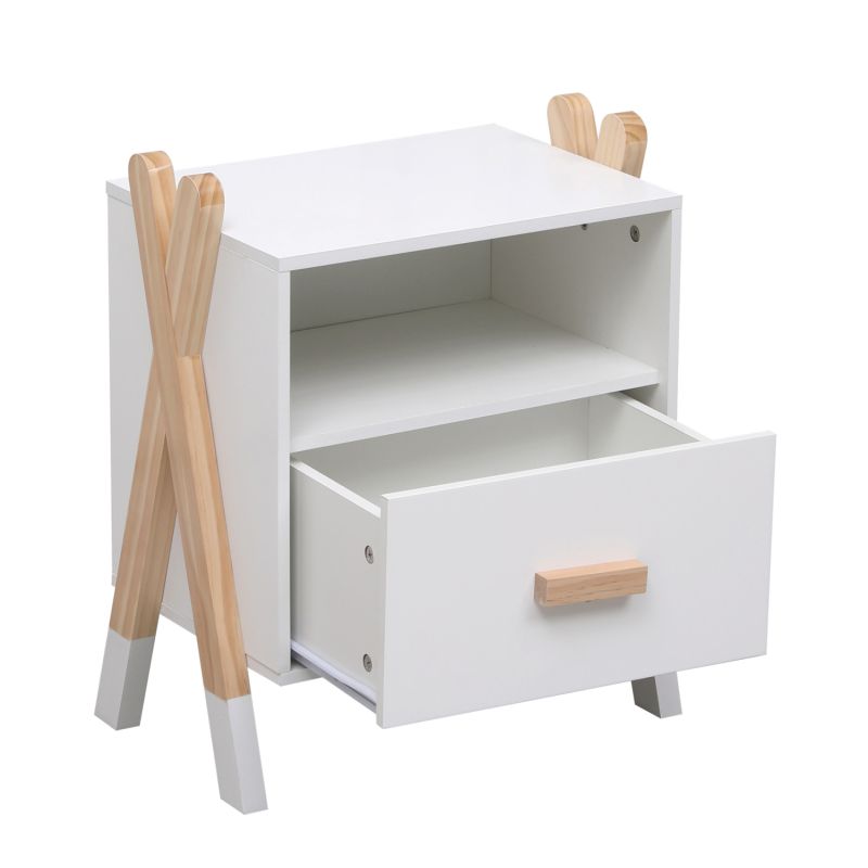NIGHTSTAND PASCHAL HM2488.03 WHITE MELAMINE-PINE WOOD IN NATURAL COLOR 46x30x55Hcm.