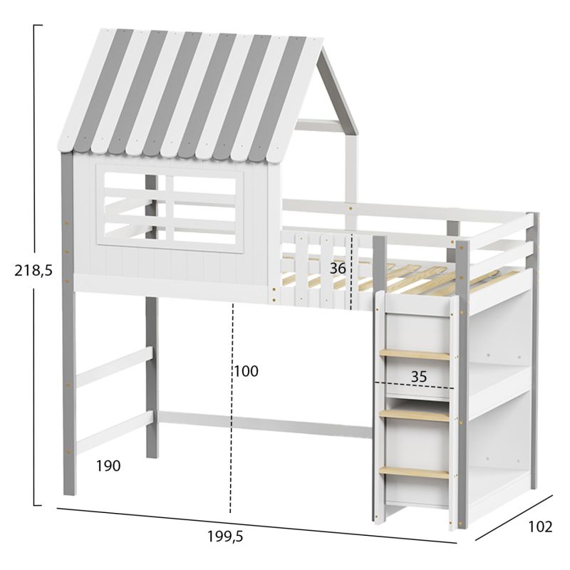 KID'S BED t.MONTESSORI WITH SHELVES HOMI HM712 PINE WOOD IN WHITE-GREY FOR MATTRERSS 90x190cm.
