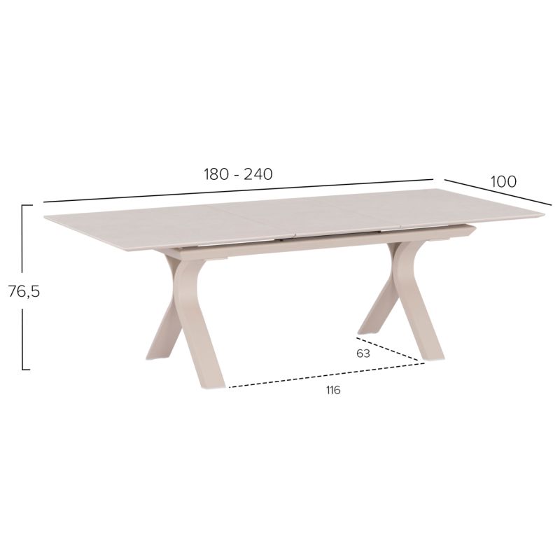 EXPANDABLE ALUMINUM DINING TABLE ANDROMEDA (S) SM6183 FRAME & SINTERED STONE TOP IN IVORY COLOR 180-240x100x76,5H