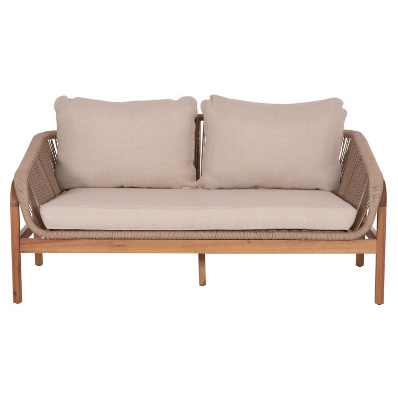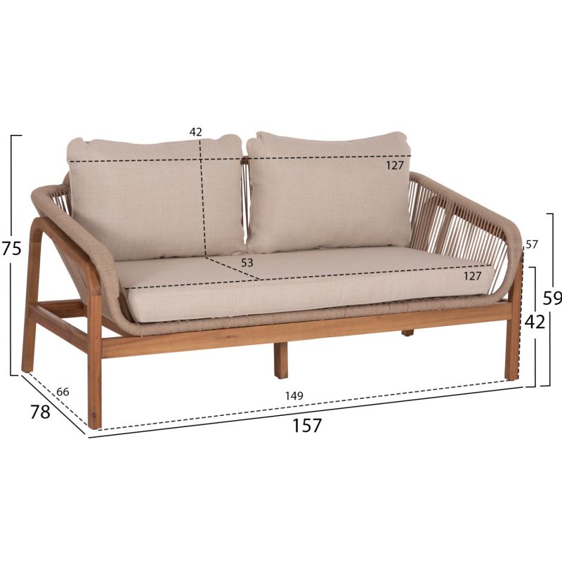 OUTDOOR 2-SEATER SOFA SERIES OASIS SM6225 ACACIA WOOD-ALUMINUM & ROPE IN BEIGE 156x82x73Hcm.