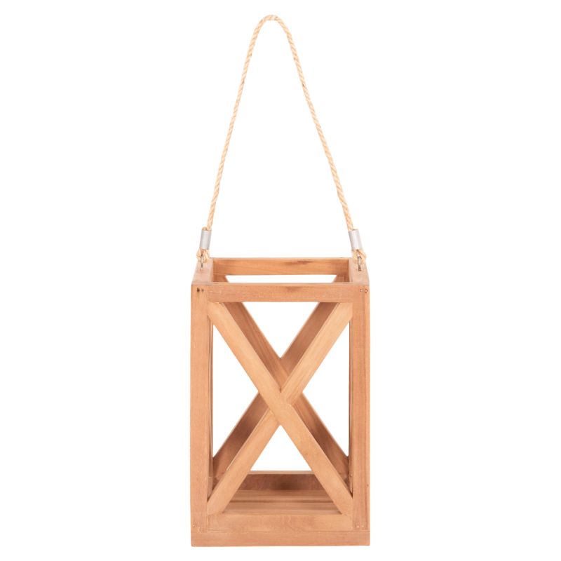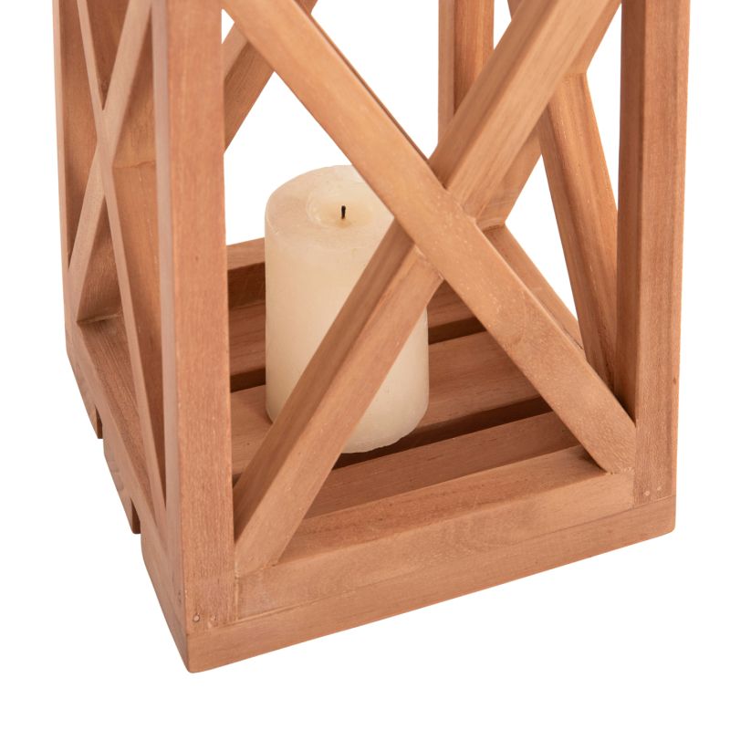DECORATIVE TABLE LANTERN FOR CANDLES FENT HM4581 TEAK WOOD IN NATURAL 20x20x30-58Hcm.