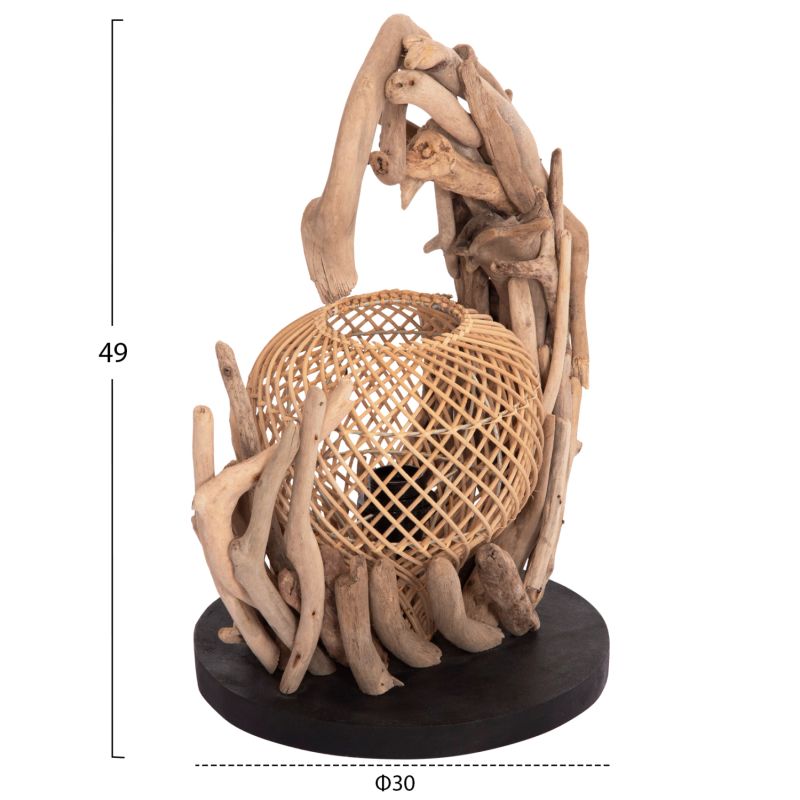 DECORATIVE TABLE LAMP ASHIN HM4438 DRIFTWOOD & RATTAN 30x30x49Hcm.