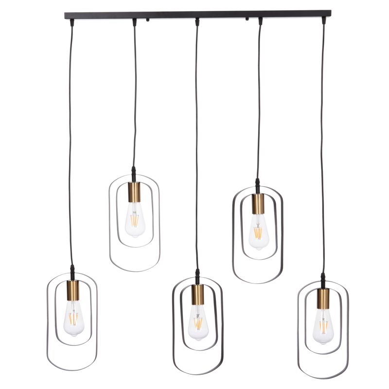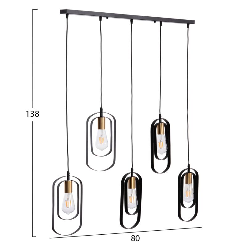 CEILING PENDANT 5-LIGHT LAMP BIUT HM7545.11 BLACK METAL-GOLD SOCKET 80x6x138Hcm.
