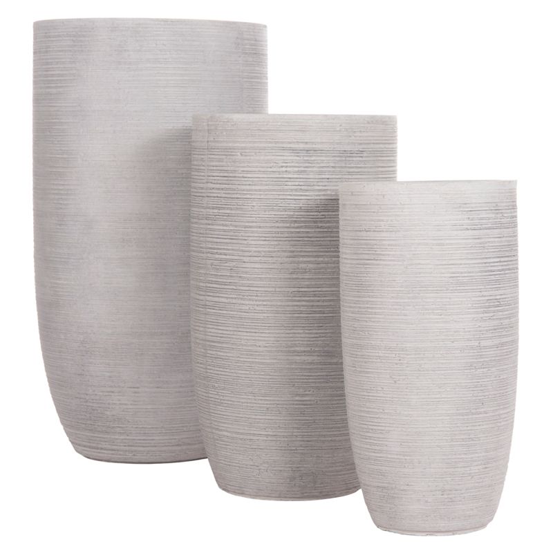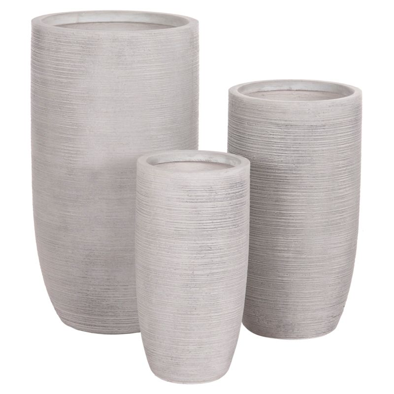 GARDEN PLANTERS CYLINDRICAL SET 3PCS SERIES GARDENER HM4721 FIBERCLAY--IN CEMENT COLOR Φ42.5x78.5Hcm.