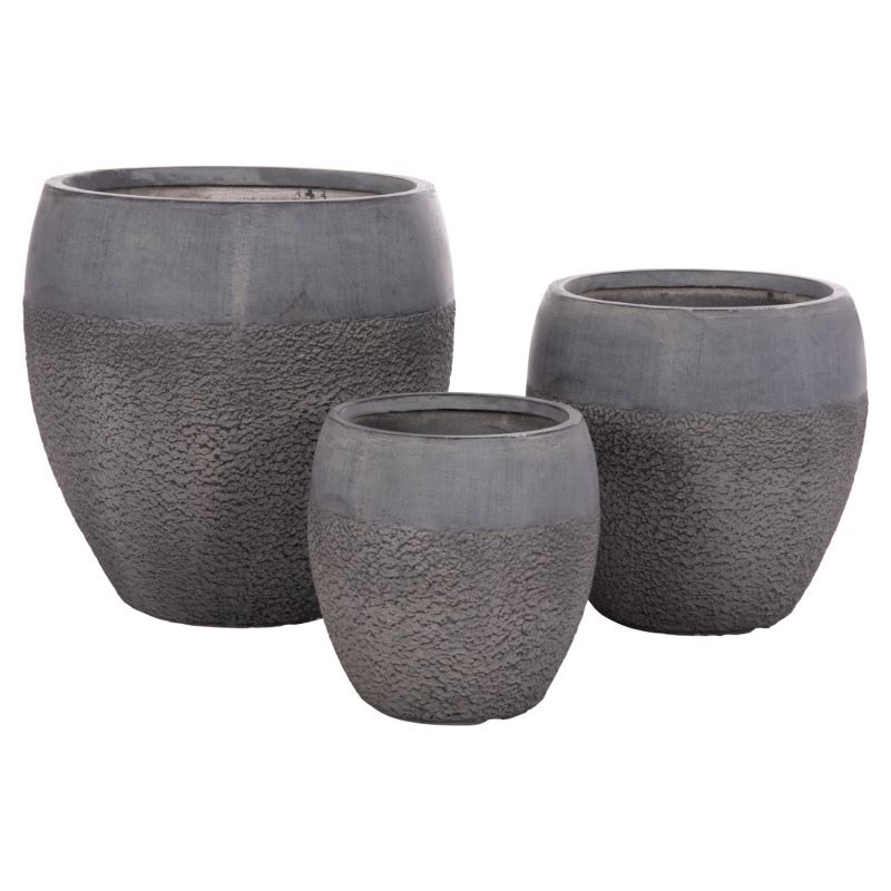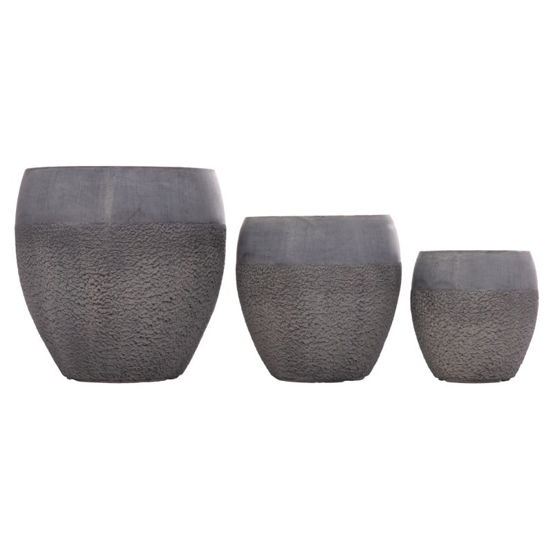 GARDEN PLANTERS SET 3PCS SERIES GARDENER ΗΜ4725 FIBERCLAY IN DARK CEMENT COLOR Φ55x54Hcm.