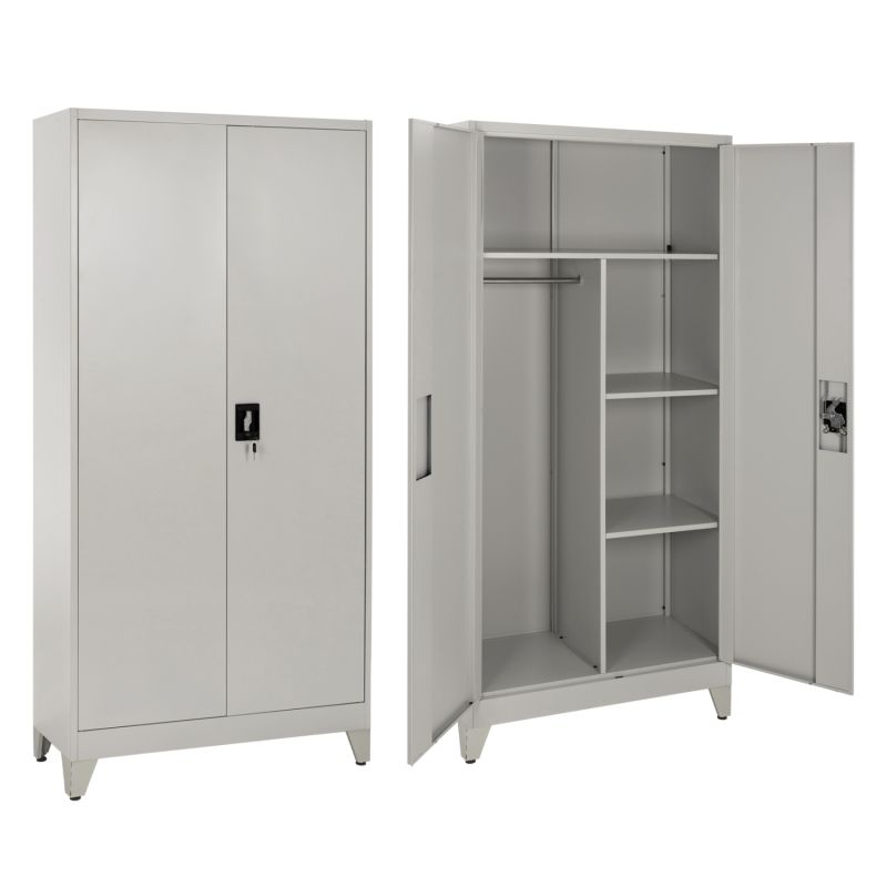 WARDROBE METALLIC WITH LEGS CLOD HM11998 2-LEAF WITH DIVIDER- LIGHT GREY 90Χ40Χ190Hcm.