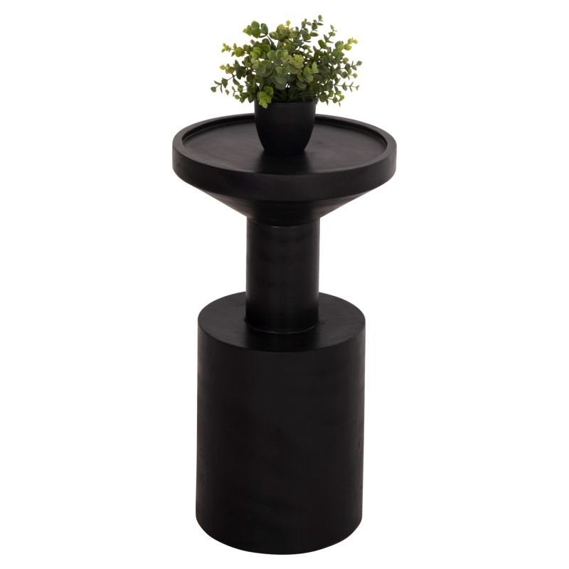 SIDE TABLE BERMAL HM9889.12 SOLID SUAR WOOD IN BLACK COLOR Φ35x65Hcm.