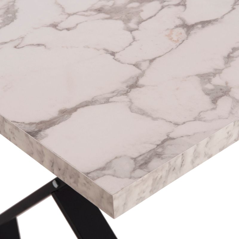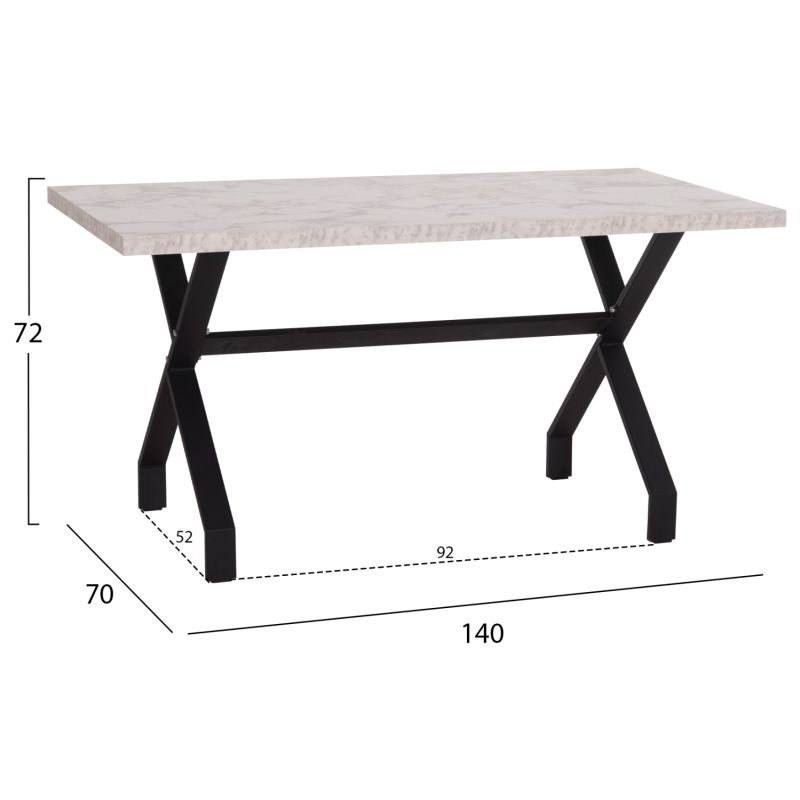 KITCHEN TABLE LANA HM18221.01 MELAMINE IN WHITE MARBLE LOOK-BLACK METAL LEGS 140x70x72Hcm.