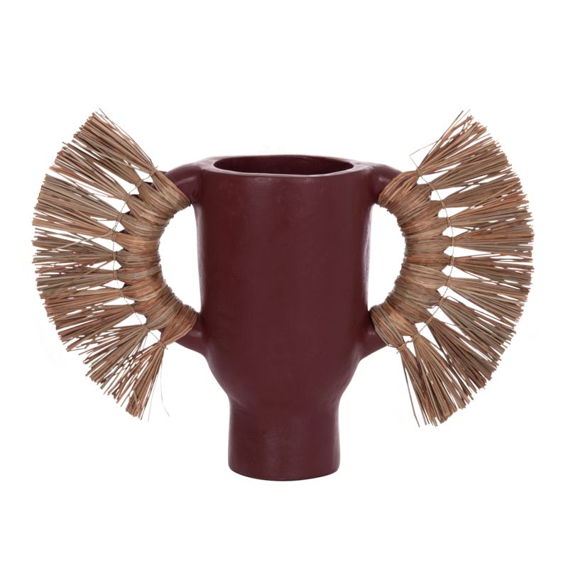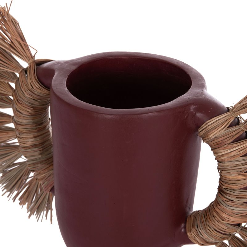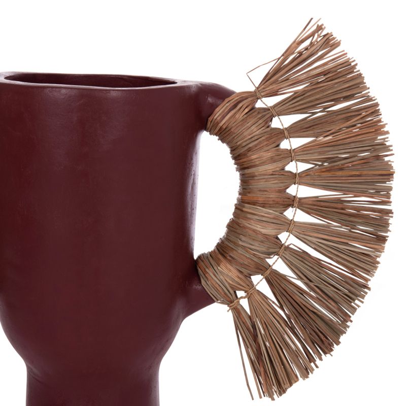 DECORATIVE TABLE VASE ALICA HM4668.06S TERRACOTA IN MAROON COLOR & GRASS--55x19x34Hcm.