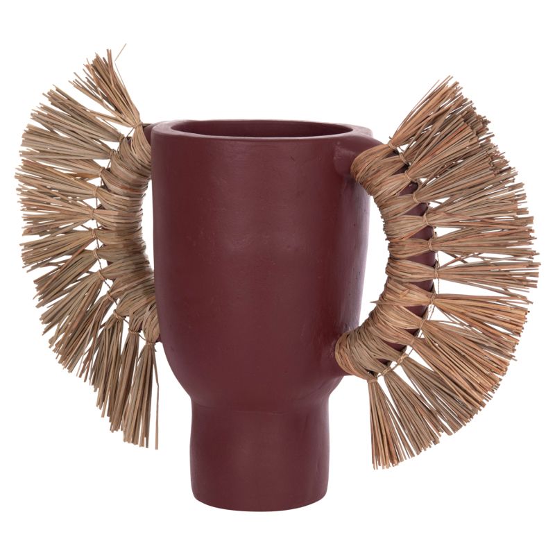 DECORATIVE TABLE VASE ALICA HM4668.06L TERRACOTA IN MAROON COLOR & GRASS--64x22x38Hcm.