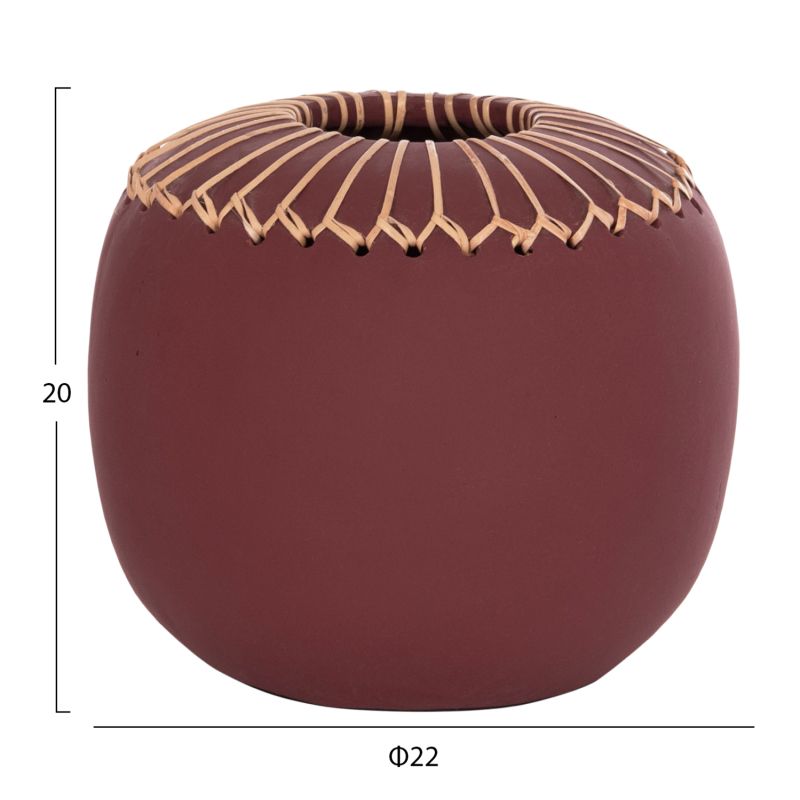 DECORATIVE TABLE VASE LENNOX HM4675.06L TERRACOTA IN MAROON RED--Φ22x20Hcm.