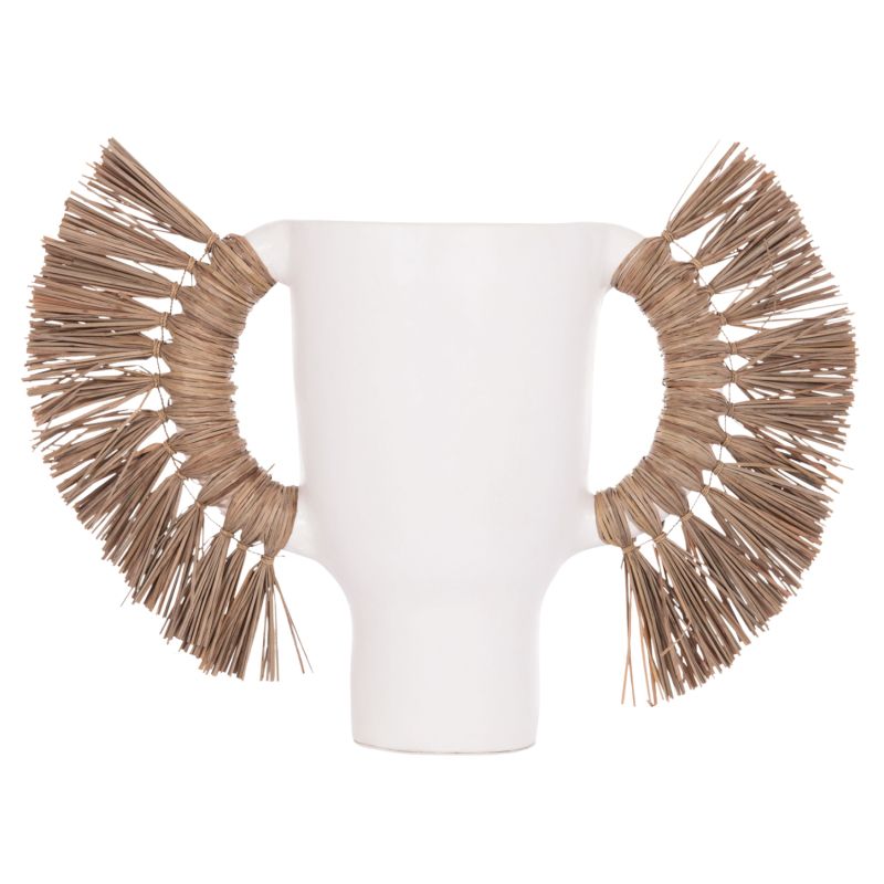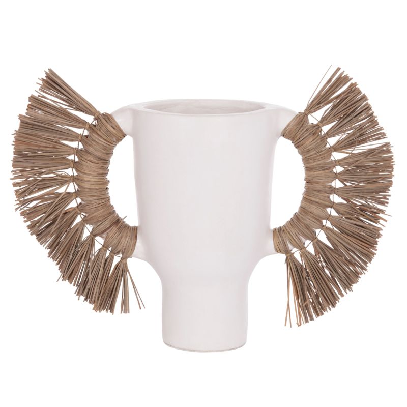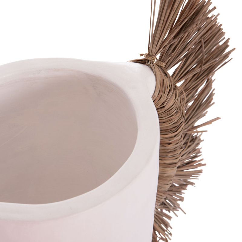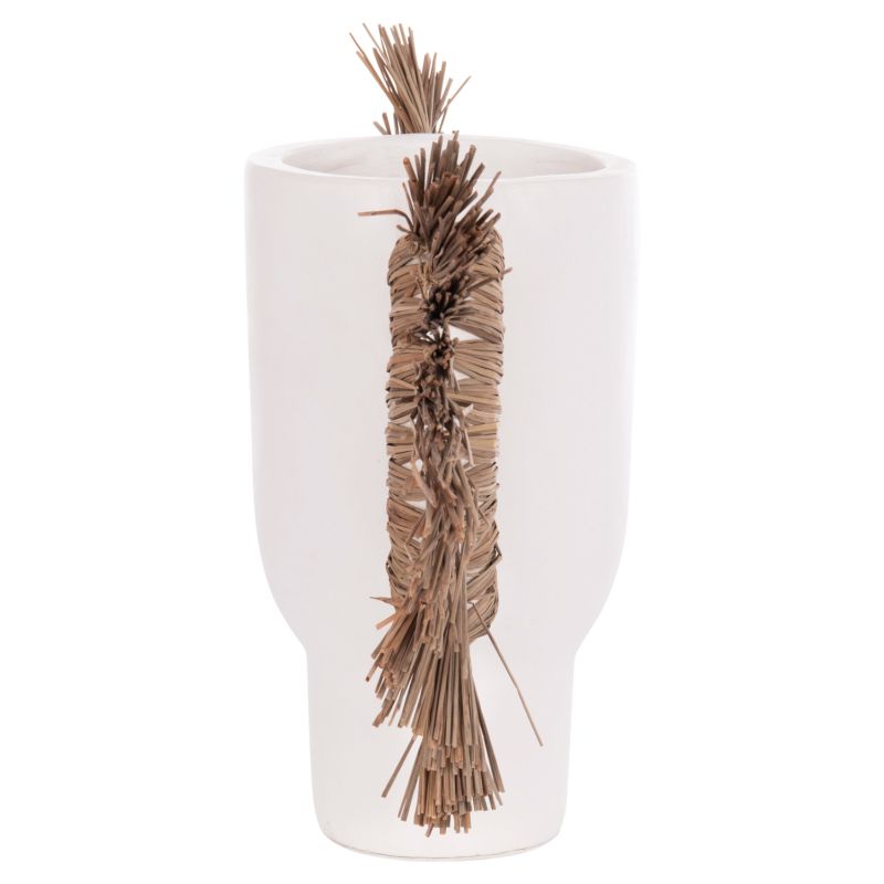 DECORATIVE TABLE VASE ALICA HM4668.02L TERRACOTA IN WHITE COLOR & GRASS--64x22x38Hcm.