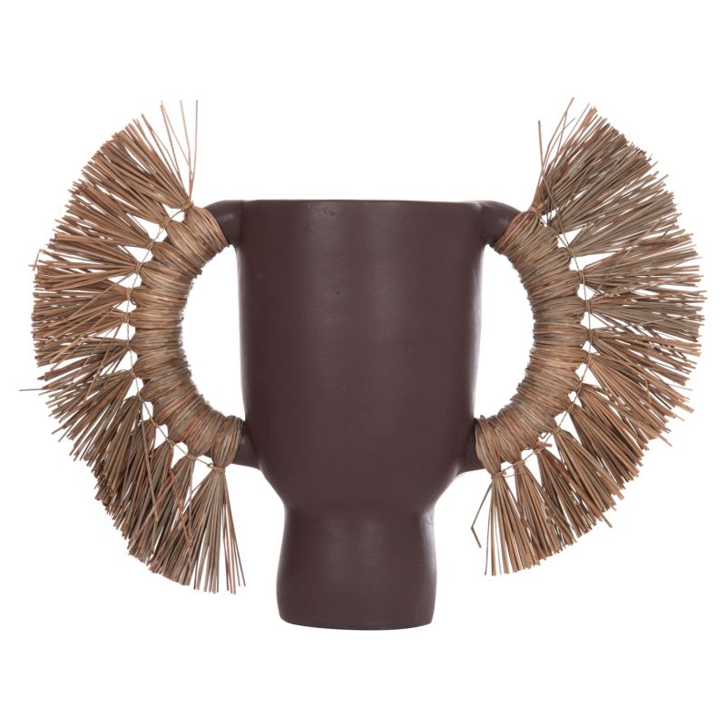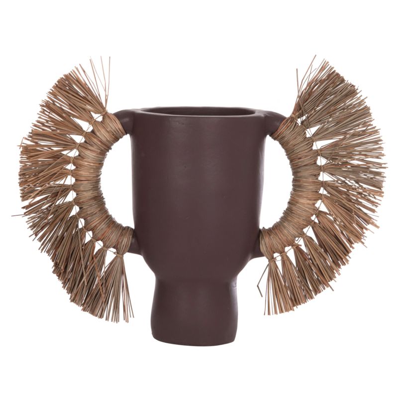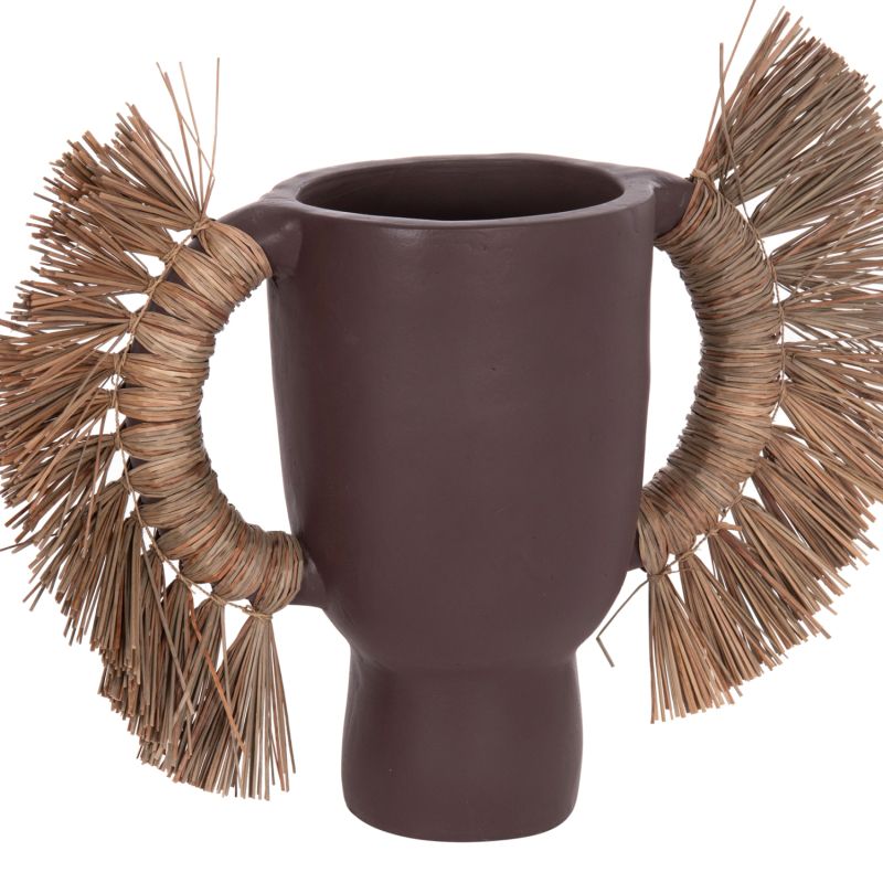 DECORATIVE TABLE VASE ALICA HM4668.07L TERRACOTA IN CHOCOLATE COLOR & GRASS--64x22x38Hcm.