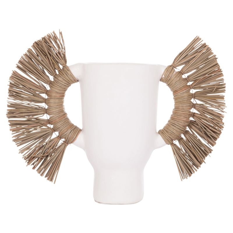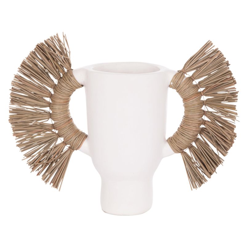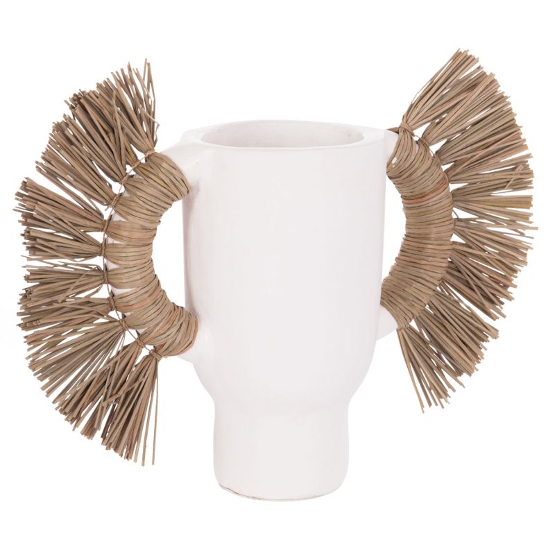 DECORATIVE TABLE VASE ALICA HM4668.02S TERRACOTA IN WHITE COLOR & GRASS--55x19x34Hcm.