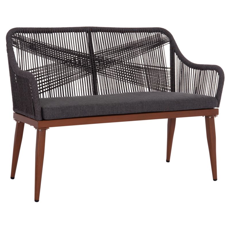 OUTDOOR SOFA 2-SEATER MYRTIA HM5550.11 ALUMINUM IN BROWN--P.E. ROPE IN ANTHRACITE 123x61x90Hcm.