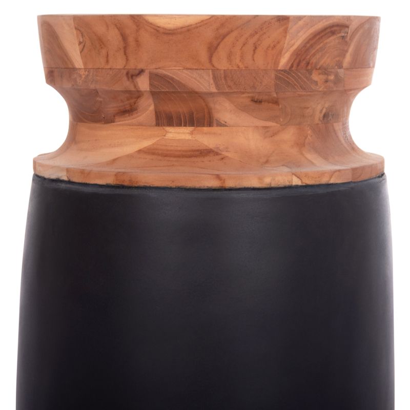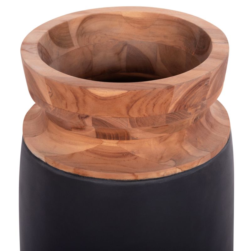 DECORATIVE FLOOR VASE LINTER HM4662.01S FIBER CEMENT IN BLACK--TEAK WOOD Φ34x60Hcm.