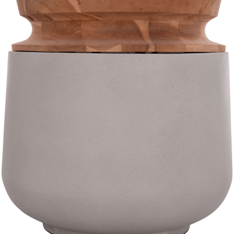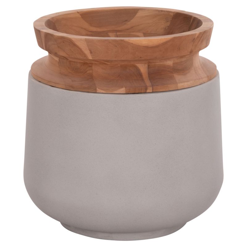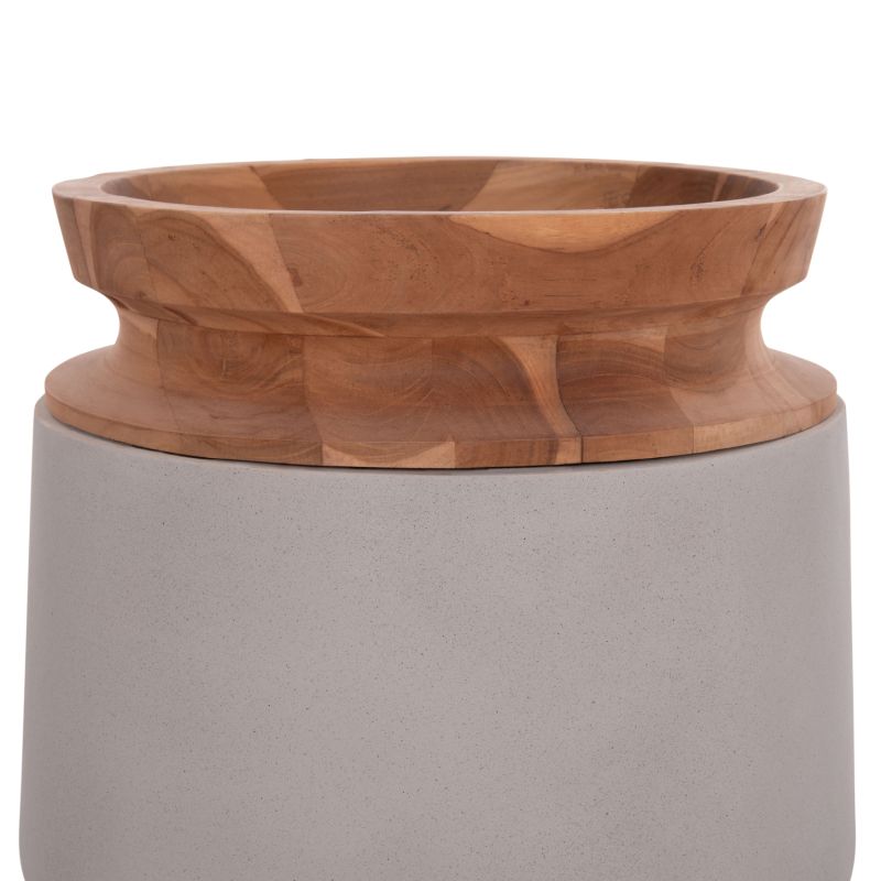 DECORATIVE FLOOR VASE LINTER HM4662.03L FIBER CEMENT IN GREY--TEAK WOOD Φ41x47Hcm.