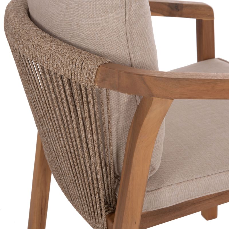 OUTDOOR DINING CHAIR CONTREL HM6244.01 ACACIA WOOD IN NATURAL-ROPE & CUSHIONS IN BEIGE 58x60x74H