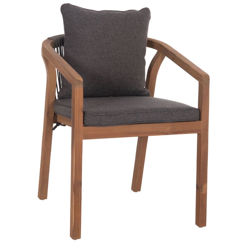 OUTDOOR DINING CHAIR CONTREL HM6244.02 ACACIA WOOD IN NATURAL-ROPE & CUSHIONS IN GREY 58x60x74Hcm.