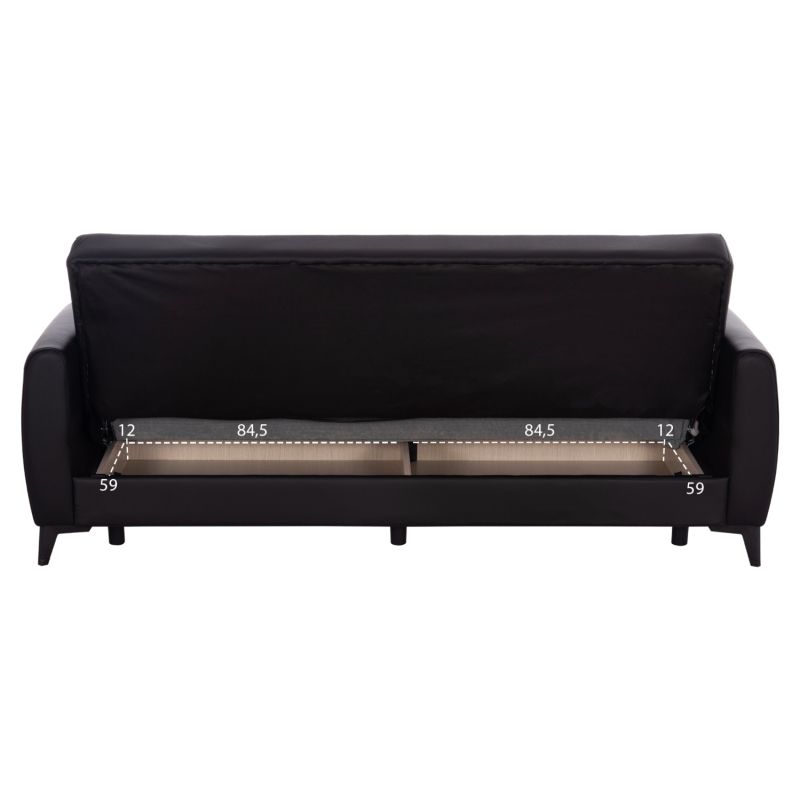 SOFA-BED 3-SEATER WITH STORAGE SPACE NIKKO HM3292.11 BLACK PU 207x80x82Hcm.